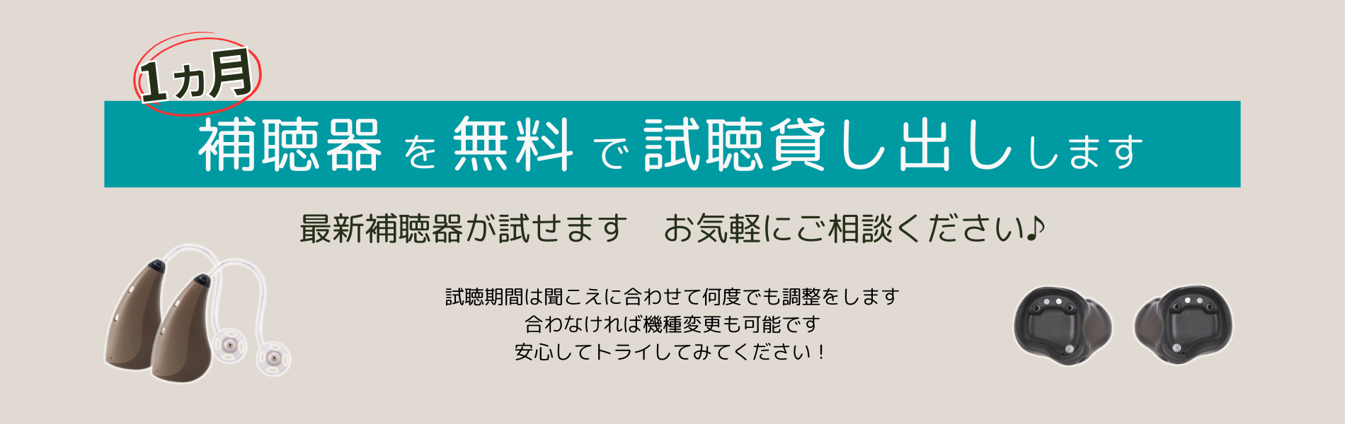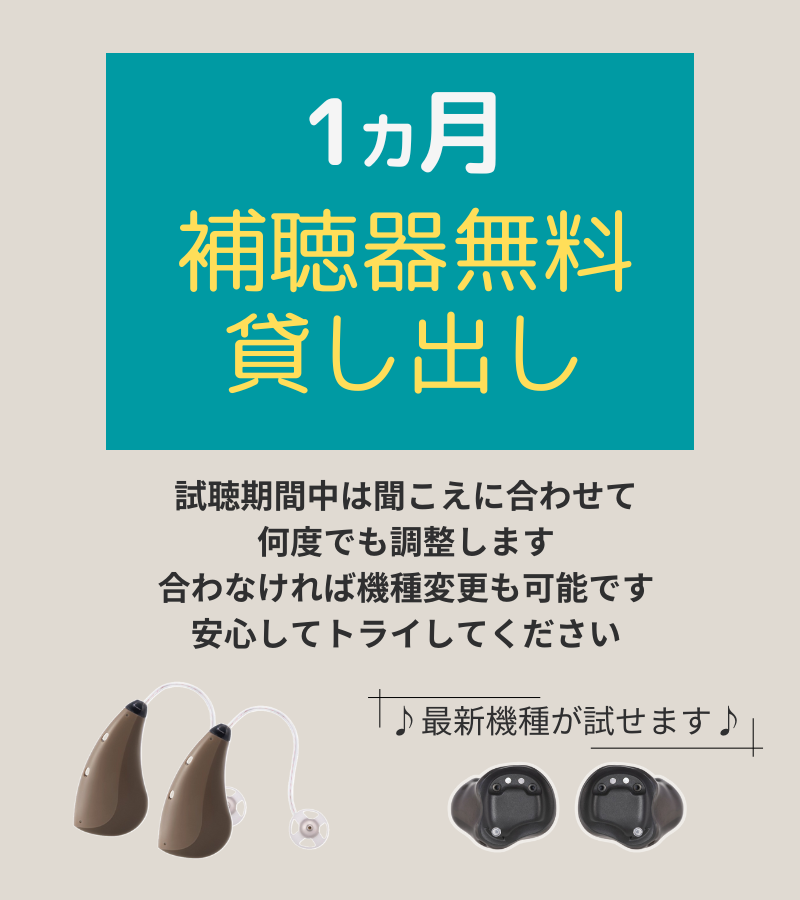 最大1ヶ月、最新機種の補聴器を無料でお貸し出しします。